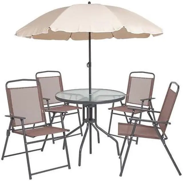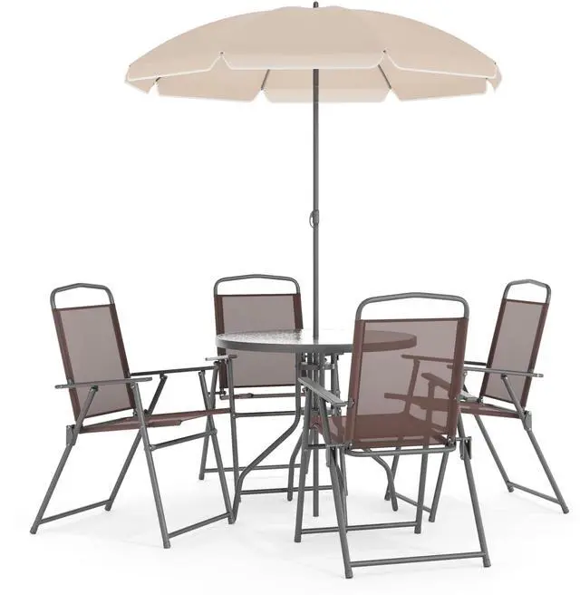 Patio Set, Umbrella, 6 Piece, Brown
