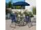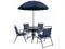Take advantage of the nice weather and eat your meals on the patio on this stylish 6 piece patio garden table set with umbrella. If you want to relocate your seating to another location on the deck, sit poolside or take it with you while camping or to an outdoor sporting event, the lightweight and compact design offer an easy to transport option. You can enjoy this set quickly, assembly of the table goes up in minutes and the chairs come fully assembled. The folding chairs are upholstered in a durable, breathable textilene material, designed for all-weather use.