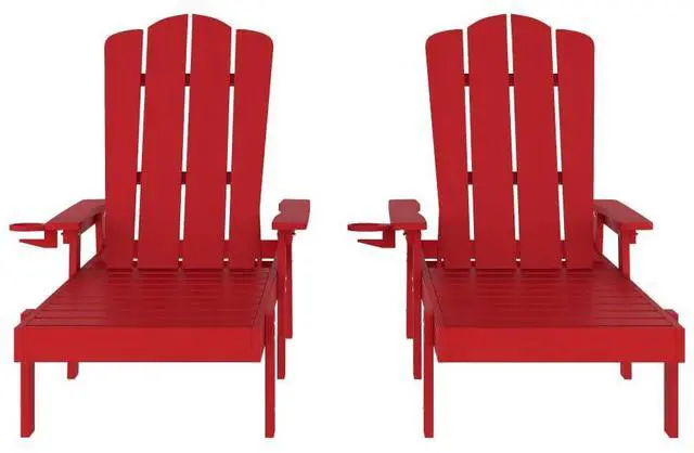 Flash Furniture Sonora Adjustable Adirondack Loungers with Cup Holder, Commercial Grade All-Weather-Weather Indoor/Outdoor Recycled HDPE Lounge Chairs, Set of 2, Red