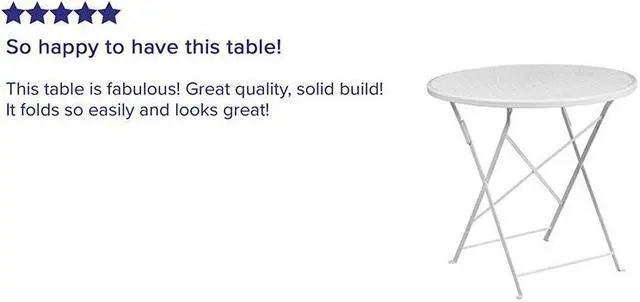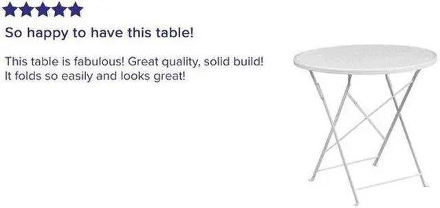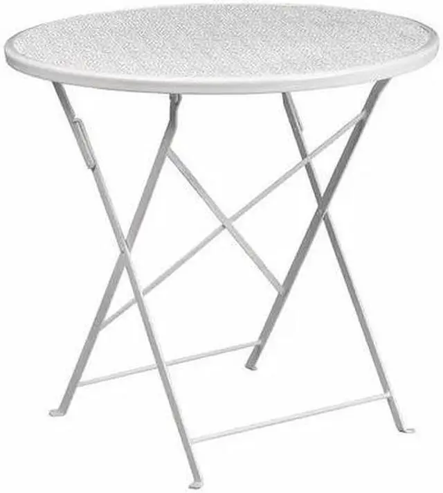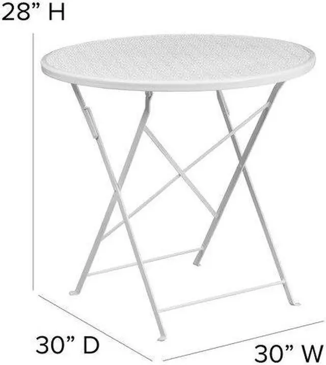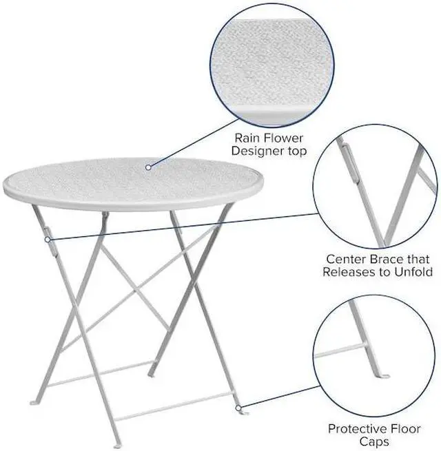 Brighten up your patio space with this beautiful white folding patio table. The rain flower printed top is very appealing. This table will enhance your bistro, cafe, restaurant, hotel or home patio space. With the convenience of a folding table you can use it as a temporary placement or fold away for storage or cleaning the space. Quickly unfold the table by pulling the center brace. The table was designed for all-weather use making it a great option for indoor and outdoor settings. For longevity, care should be taken to protect from long periods of wet weather.
