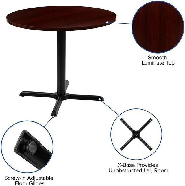 Bring the meeting to your office for one-on-one connections that you need to have with your staff on an ongoing basis. This round conference table is ideal for offices to provide a separate meeting space from your workspace. This small conference table can seat up to four colleagues. Providing a sleek appearance, the metal x-base provides unobstructed leg room. If your business requires you to meet with clients regularly, no need to worry about leaving your office or booking the only conference room when you have your very own meeting table in your office. Teachers will benefit by having this table in the classroom for parent-teacher conferences. Furnish your small break room with several of these break room tables, pair with four stack chairs or cafe chairs. These multipurpose tables are designed to conform in any setting from offices, meeting rooms, classrooms to break rooms.