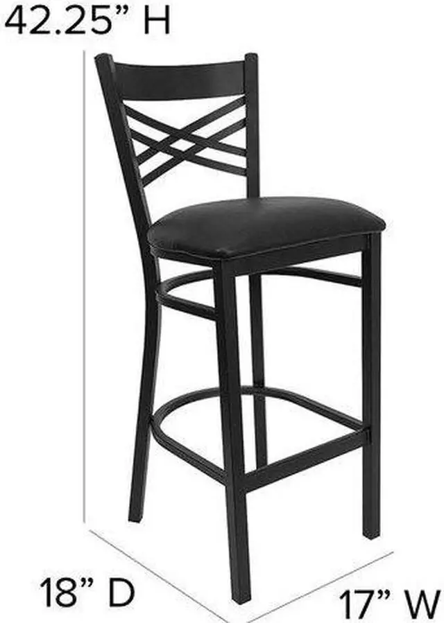 Create a first-rate dining experience by offering your patrons great food, service and attractive furnishings. Metal bar stools are a popular choice for furnishing restaurants, lounges, pool halls, bars and other high traffic establishments. This stool is easy to clean, which is an important aspect when it comes to a business. Built to withstand the everyday hustle and bustle in the restaurant and hospitality business, these dining stools will also look great in your home. The beautiful wood seat and "X" back design will keep guests comfortable. The frame is stabilized using welded joint assembly and two curved support bars which includes a footrest to improve posture. The floor glides help protect your floors and ensure smooth gliding. Use this stool in your dining room or home bar to give your decor a fresh look. The simple and lightweight design of this chair is a must have, whether used in the home or your commercial business.Product Dimension-17"W x 18"D x 42.25"H