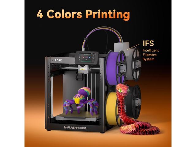 4 Colors Printing. With IFS (Intelligent Filament System), Flashforge AD5X 3D printer offers multi-color printing, and unleashes your creativity.