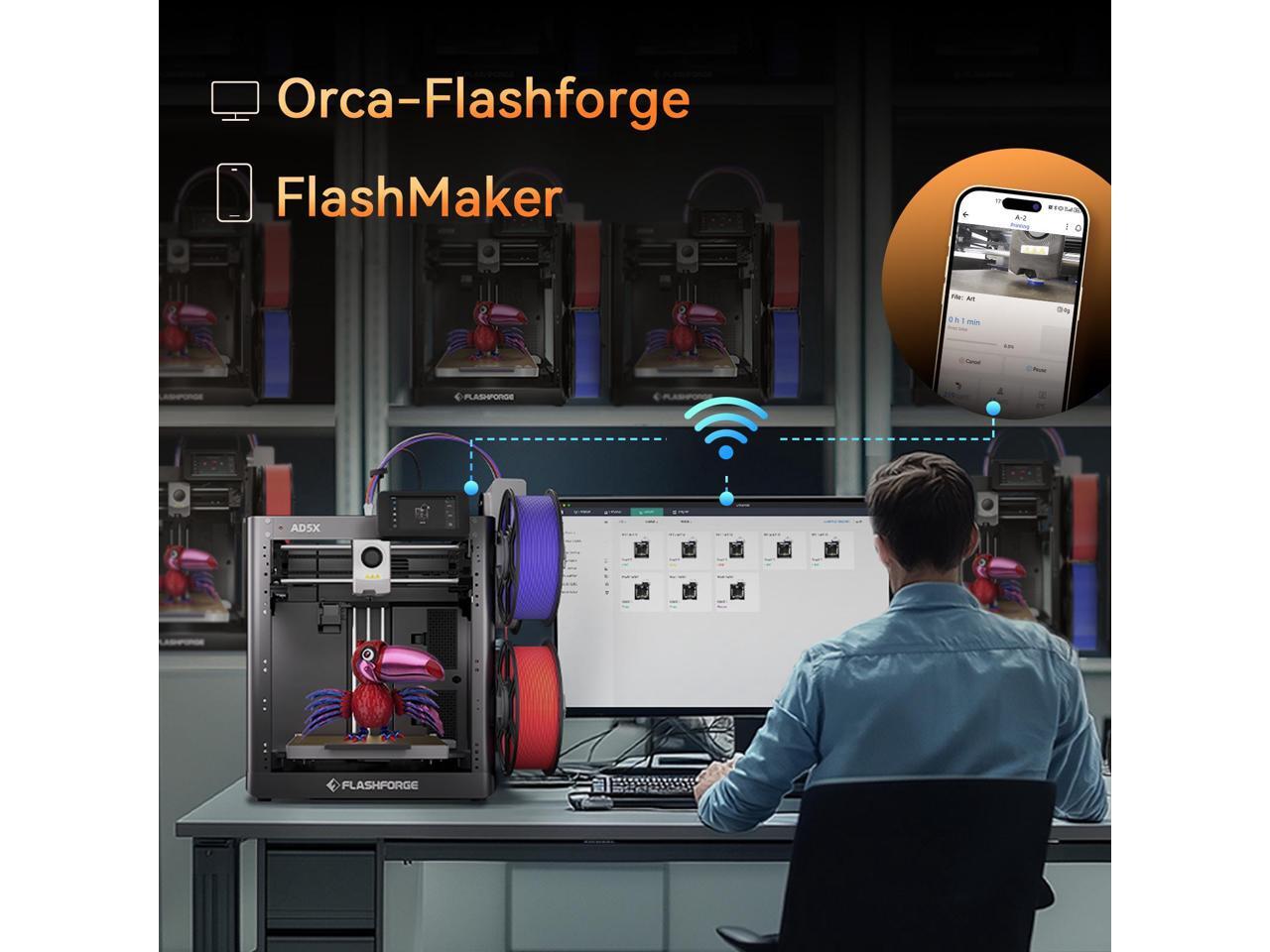 Flashforge AD5X 3D Printer, 600mm/s High-Speed and Multi-Color 3D Printer with 300C Nozzle, Auto Leveling and PEI Flexible Plate, 8.7 x 8.7 x 8.7in
