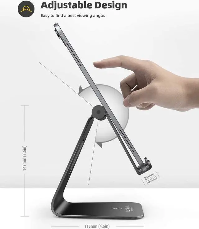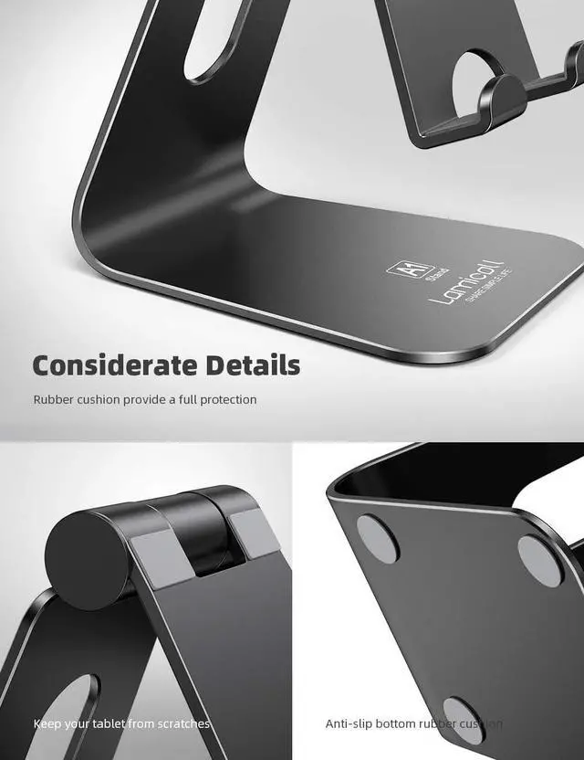 Adjustable Tablet StandGreat desk accessories in the office and house. Easy to adjust supporting both vertical and Horizontal viewing. Christmas Gifts Thanksgiving Present Regalos de Navidad. Exquisite workmanship Lamicall pad stand is made of spaceflight al-it alloy and super high strengthened alloy steel material higher strength lighter weight. Compatibility The tablet stand fits 4 -13 inch cell phones and tablets like 2024 / 2022 / 2021 iPad Pro 11 / 12.9 / 13 inch iPad 10.9 iPad Air 6/5/4 2021 iPad Mini 6 2020 iPad Pro iPad Mini 3 4 5 iPhone 16 Pro Max iPhone 15 Pro Max iPhone 14 Pro Max/ 13/ 12/ 11 iPhone X XS Max XR 10 8 Plus surface Pro Galaxy Tab.