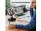 The weighted base plus hard folding arm offer sturdy structure to withstand weights of large tablets and heavy operation on the device a professional grade tablet stand.