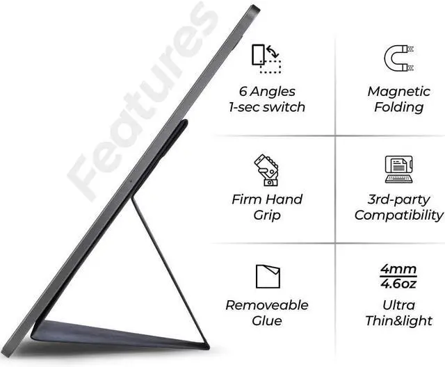 [Reliably Stable] Its scientifically engineered and unique structures make sure that it can support your tablet in any angle stably. [A Greater Sense of Security in Gripping] Its not just a stand but also a handheld grip when its the outer layer is propped out away from the body. It ends your worry of dropping the tablet while holding it on the go.