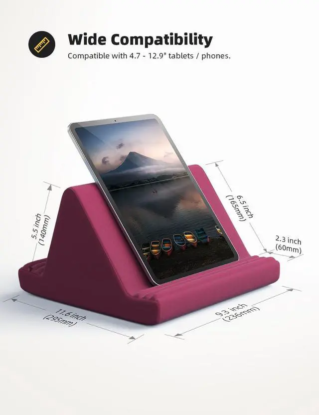 High-Quality Materials Made of high-quality materials it has strong resilience and its not easy to deform. The design of the detachable pillowcase makes life more simple. COMPATIBILITY Universal tablet stand pillow is suitable for tablets between 4.7 and 13 inches like new 2024 iPad Pro 13 inch/ 2022/ 2021 iPad Pro 11/ 12.9 2024 iPad Air iPad 10.9 iPad Air 6/ 5 iPad Mini 6/ 5/ 4/ 3 iPad Pro 9.7 / 10.5 iPad 5th/ 6th/ 7th/ 8th/ 9th/ 10th generation Kindle Fire HD 7 8 10 E-reader iPhone 16 Pro Max iPhone 15 Pro Max 14 13 12 11 Pro Max iPhone Xs Max Surface Pro Galaxy Tab S8 S7 A8 A7 Switch.