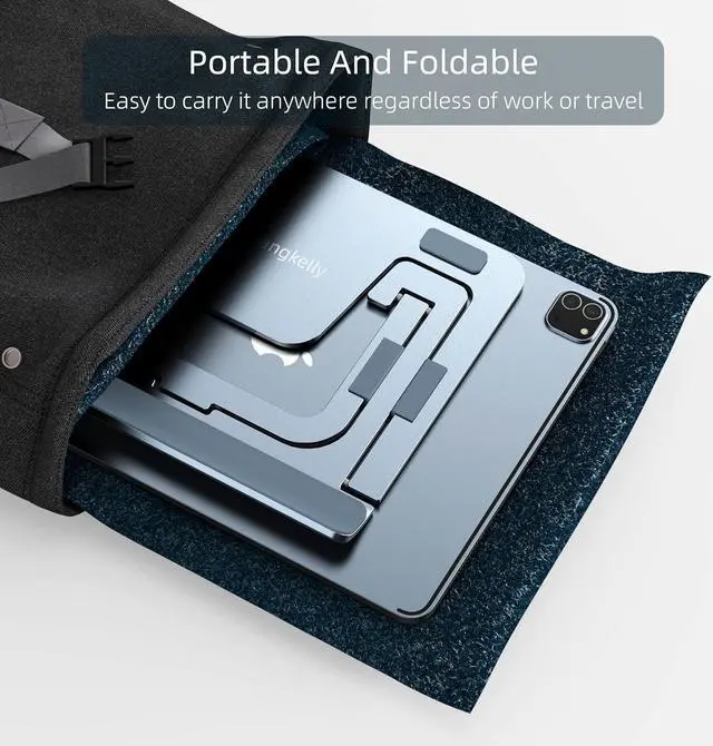 Made of aviation aluminum alloy material. The stand is so sturdy that it won't wobble and shake and the wide base makes it a better support. Perfect for design work watching movies playing games drawing reading and writing etc. Adjustable and Foldable. Providing a variety of angle options to meet daily use. And the flat folding design makes it easy to be carried anywhere regardless of work travel life or entertainment. Soft silicone pads are both provided on the bottom and the top of the stand to protect your devices from scratches and sliding.