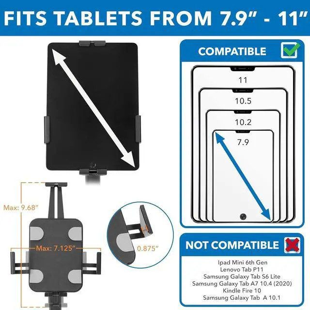 Tablet kiosk for business and retail. Universal tablet countertop stand with anti-theft function allows use of tablets in a public setting. Great for office retail hotel school church commercial restaurant kitchen display exhibiting at conferences events trade shows or personal use. Universal fit works with most tablets. Adjustable clamp mount fits all tablets from 7.9 to 11 inches in screen size. With its universal design there is no longer the need to replace model-specific kiosks when a new sized tablet is introduced simply re-adjust the clamp size to fit a different tablet model or a new generation.
