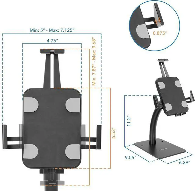 Theft deterrent. Lockable secure design with anti-theft screw prevents it from theft and unwanted removal. Less intrusive design of the clamps achieves the right balance between security of the tablet and access to full functionality of the tablet such as access to home buttons ports and cameras. Fully adjustable. The tablet head can tilt and rotate to suit varying applications and user types. For added safety the base can also be bolted down to a counter. Quality Promise. This Mount-It! tablet kiosk stand comes with a Lifetime warranty and our knowledgeable and responsive US-based customer support team is available to answer any questions you may have during standard business hours