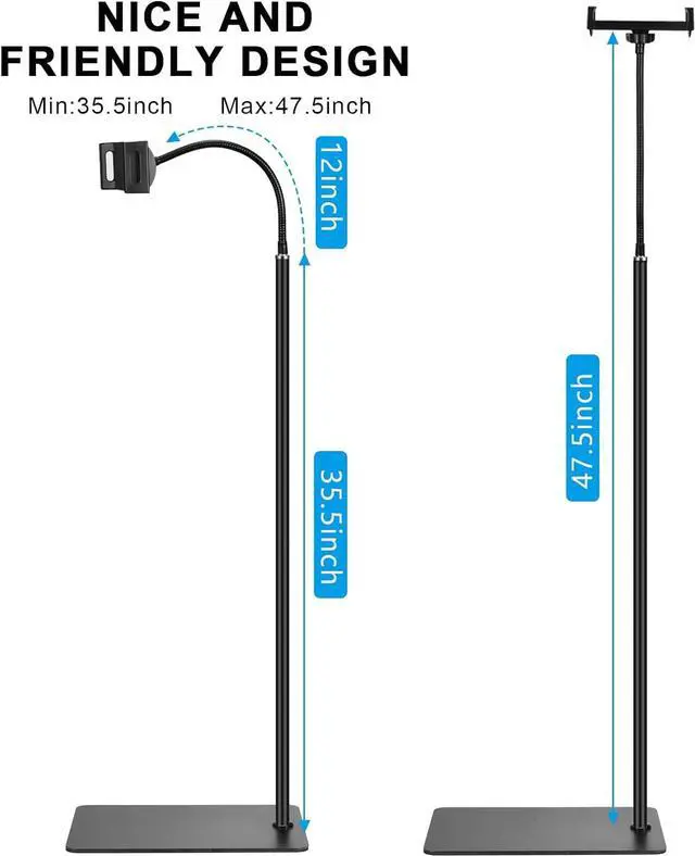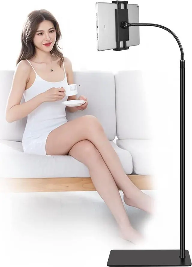 Strong Stability: 1.4K g heavy and wide base makes the tablet floor stand more stable and reliable. Made by premium solid aluminum alloy the gooseneck arm and extension tube are more stable than usual. Our tablet floor stand provides safe and secure support for your device. Stable Base and
