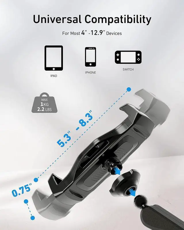 Wide Compatibility: Our TA13 Tablet Mount works with most 4- 12.9 smartphones tablets Nintendo Switch and Kindle E-readersSturdy and
