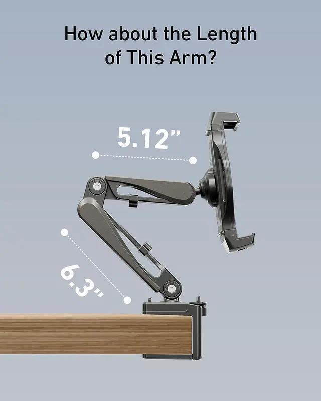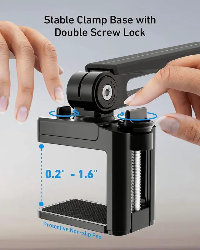 Secure: This iPad Stand features a strong clamp mount and durable materials for safe and stable device support. The reinforced base fits the countertop/headboard thickness between 0.2 to 1.6 (5 - 40 mm)Ergonomic