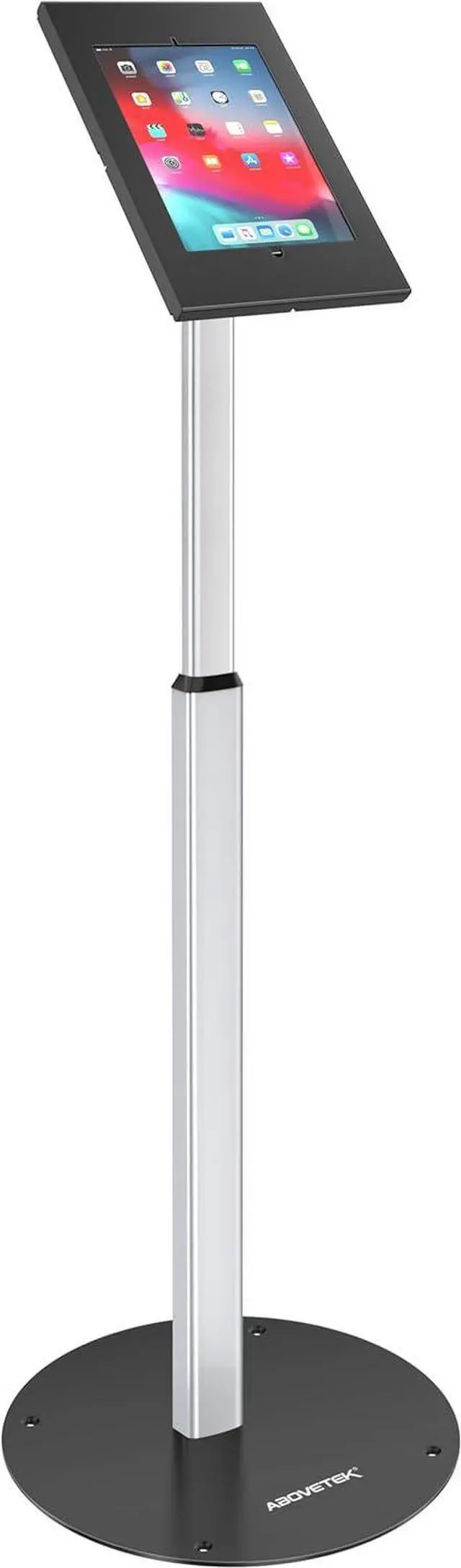 Enhanced Stability: AboveTEK's iPad kiosk floor stand features an attachable base with screw holes for extra security complemented by an anti-slip pad for enhanced stability. 0.16 thick and weighing 3kg ( 6.6 lb) guarantees a strong stable foundation suitable for daily use. Neat Setup Locking