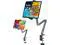 Stand for iPad: The tablet arm stand for desk with 5 joints which is fully adjustable 360° rotatable and 180° bending. With one hand you can easily adjust the arm. One push one pull and release to automatically position to the desired angle and height for the perfect viewing angle whether you're standing sitting or lying down. Ideal for watching movies gaming reading or cookingSturdy