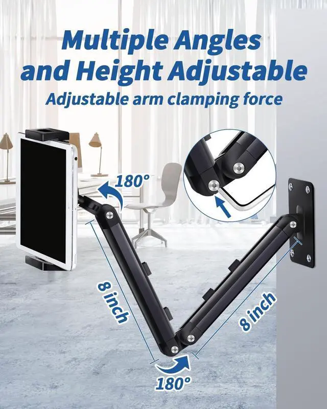 Ergonomic Tablet Stand: The tablet wall mount is composed of 4 hinges allowing you to extend it to a distance of 16.5 inches when a tablet is mounted on it allowing you to read from a more comfortable angle reducing neck pressure.