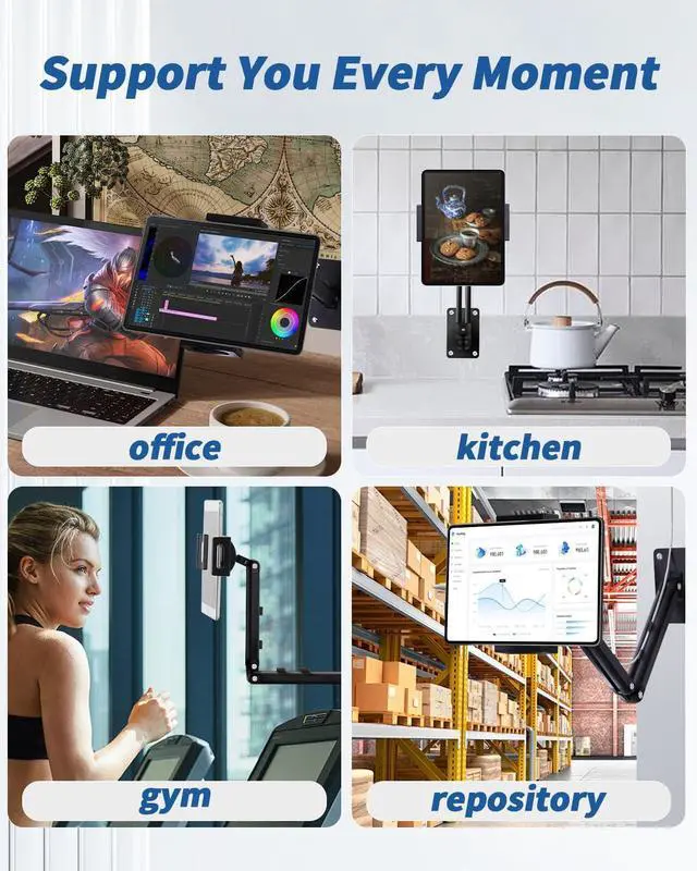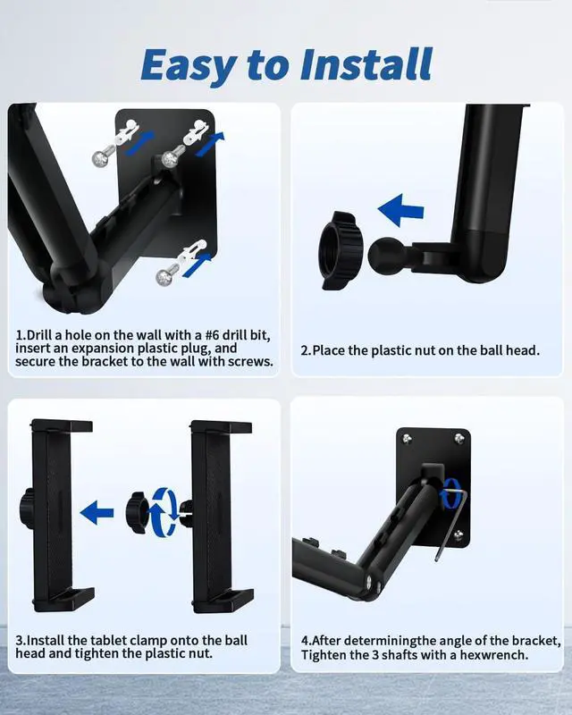 Multi Scenario Use: This tablet wall mount comes with screws and expansion plastic tube Can be installed in offices kitchens study rooms bedrooms and bathroom for use.