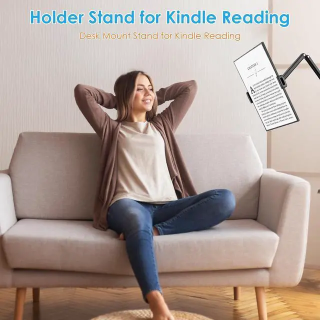 Extended Long Arm: 3 sections long arm stand holder for kindle. Longer distance and more flexible. Good for you to use your tablet in various scenarios - watching movies playing games reading on Kindle viewing recipes etc.