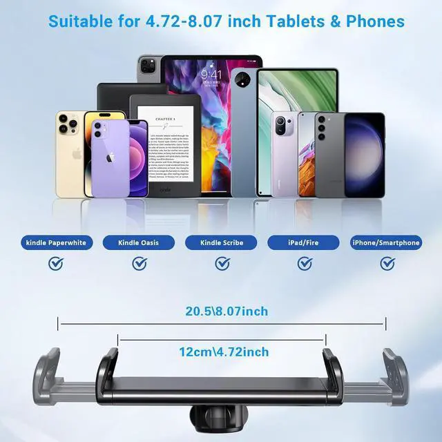 This gooseneck arm can support most phones and tablets also compatible with kindle device compatile with iPadA good gift for your friends/family gift for readersClamp it to your bed or desk enjoy the reading with Kindle a must have accessories for kindleThe lazy arm is flexible and bendable for your different angle laying down in bed