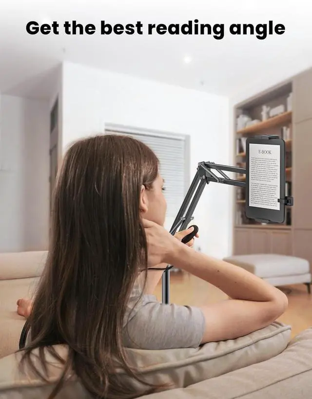 Accessory Combo: This flexible floor stand combined with the wireless Kindle page turner is the perfect combination of reading accessories. The Kindle holder with remote page turner frees your hands and helps you find the perfect reading angle. A must-have Kindle accessories for women and man offering a comfortable and effortless reading experience. The perfect solution for reading in bed.