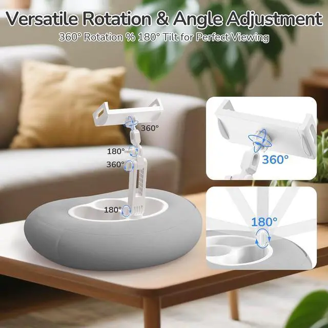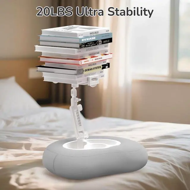 Portable: Crafted with soft and cozy cushion material this Kindle pillow stand offers a delicate and skin-friendly touch ensuring an ultimate comfortable experience when used on sofas or beds. Equipped with a 360° rotating ball head it can hover at any angle letting you find the most comfortable posture whether lying down sitting or lying on your side. As a lightweight kindle holder for bed or ipad pillow stand for lap its easy to move for comfort wherever you areStable and Wobble-Free Reliable to