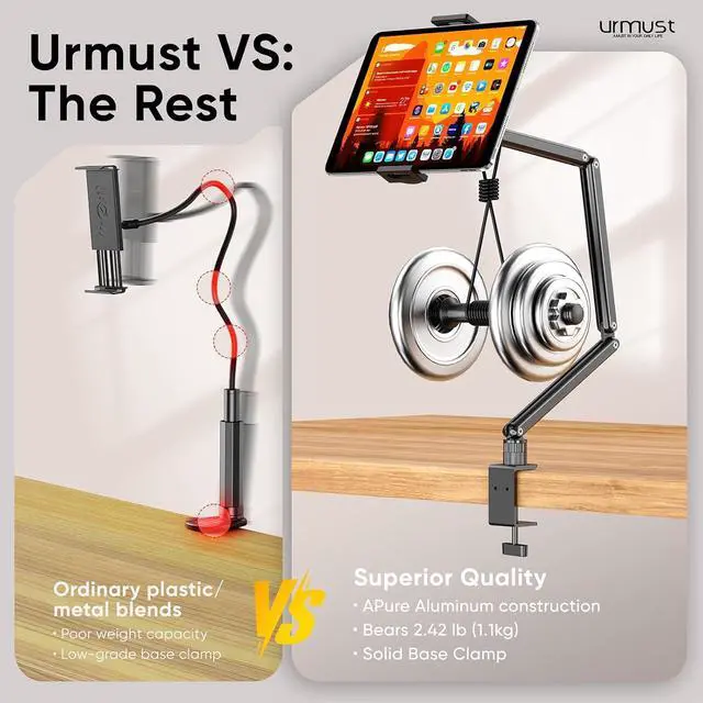 & Reliable: Made from aircraft-grade aluminum alloy this stand is incredibly stable. The scientific base design ensures stability even with heavy devices supporting up to 2.42 lb ( 1.1 kg). Use your devices without worry extending their lifespan and preventing accidental damageEasy Installation & Tidy