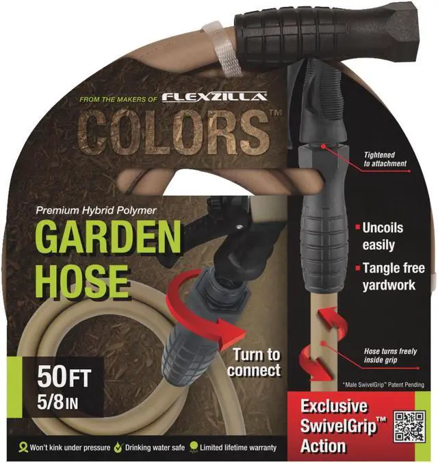 Flexzilla Colors SwivelGrip Garden Hose 5/8in x 50ft 3/4in 11 1/2 GHT Fittings Brown Mulch