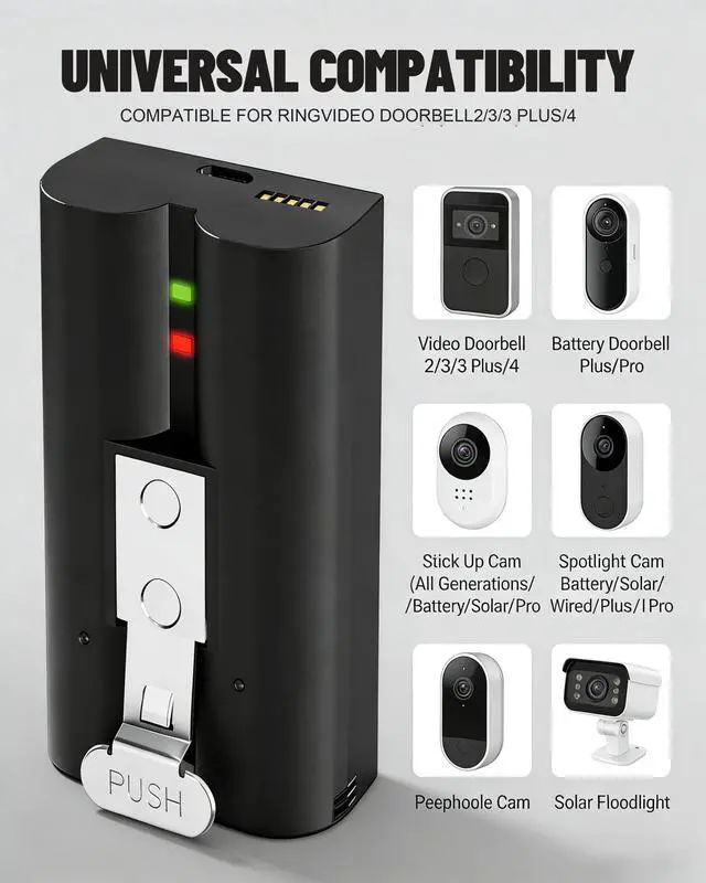Our 7200mAh high-capacity battery delivers far longer runtime than standard options. With normal use, it powers your Ring devices for weeks per charge, reducing frequent swaps and ensuring non-stop security monitoring.