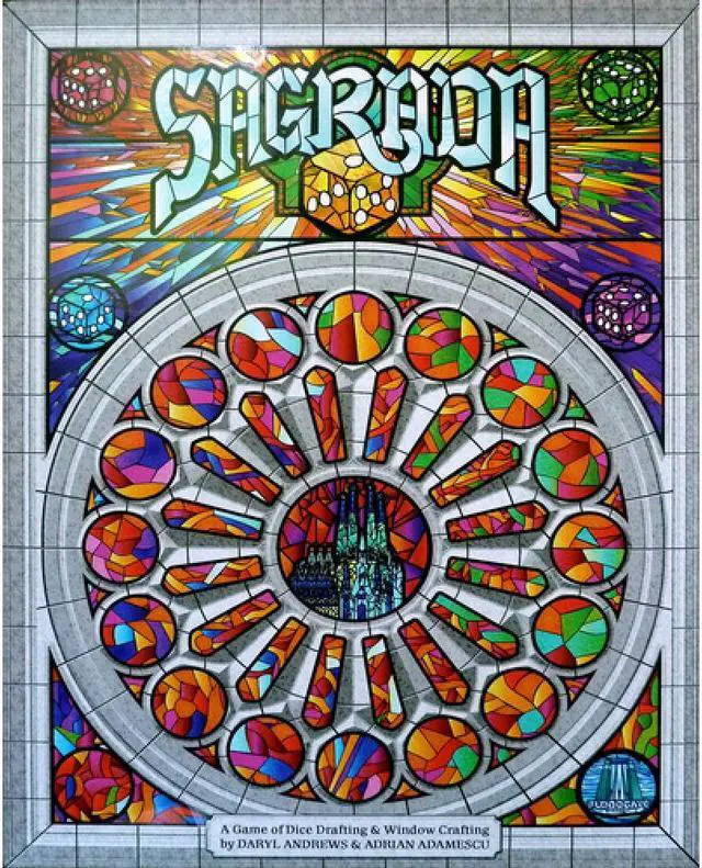 As a skilled artisan, you will use tools-of-the-trade and careful planning to construct a stained glass window masterpiece in the Sagrada Familia. Players will take turns drafting glass pieces, represented by dice; carefully choosing where to place each one in their window. Windows have unique color and shade requirements, and similar dice may never be adjacent so placing each die is more challenging than the last. Fortunately, you'll have just the right tools to help you through. Gain prestige by adapting to the preferences of your fickle admirers, and of course, by adding your own artistic flair while completing your glass masterpiece in Sagrada. Sagrada - a game of dice drafting and window crafting for 1 to 4 players that plays in about 30