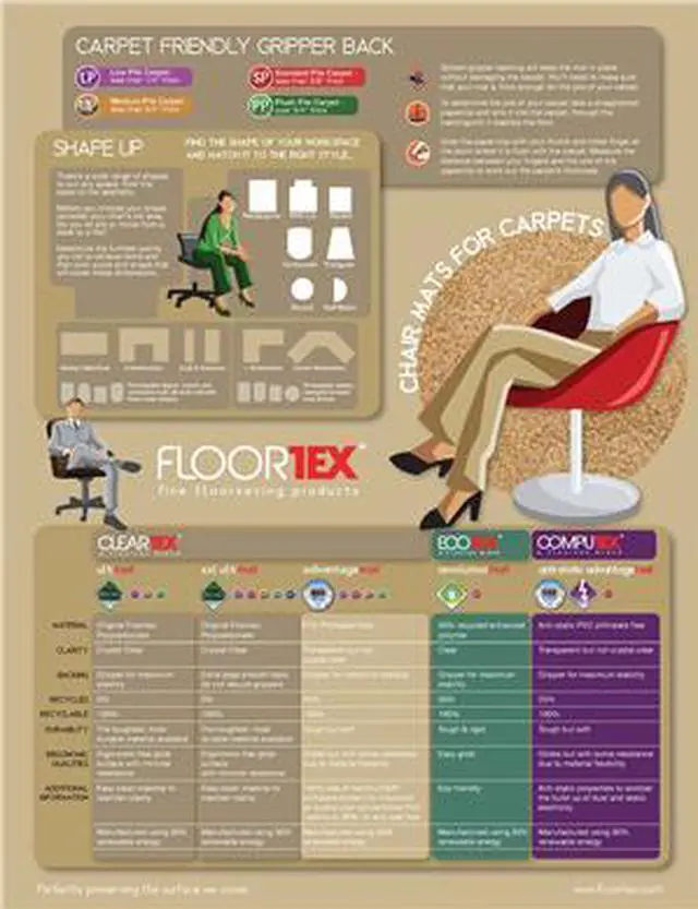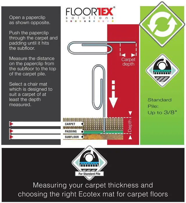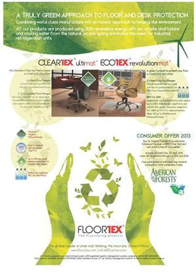 Floortex EcoTex Evolutionmat Manufactured from up to 50% recycled Enhanced Polymer; Extremely durable, high clarity and 100% recyclable; Reduces your carbon footprint; Gripper back for use on standard pile carpets.