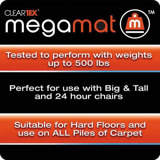Heavy-duty chair mat tested up to 500 lbs - perfect for 24-hour offices, big and tall users.