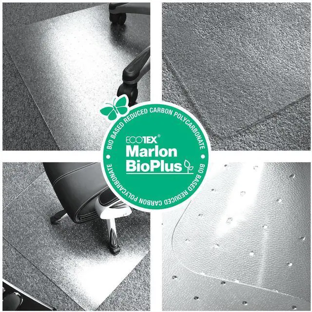 Ecotex Marlon BioPlus Polycarbonate Chair Mat for Low to Medium Pile Carpeted Floors Rectangular 29" x 47" Clear NCCMFLBG0001
