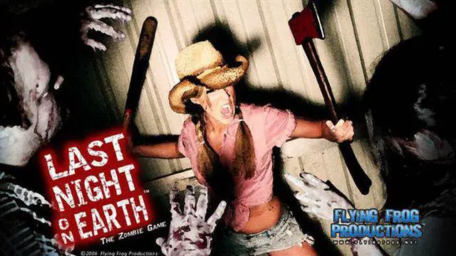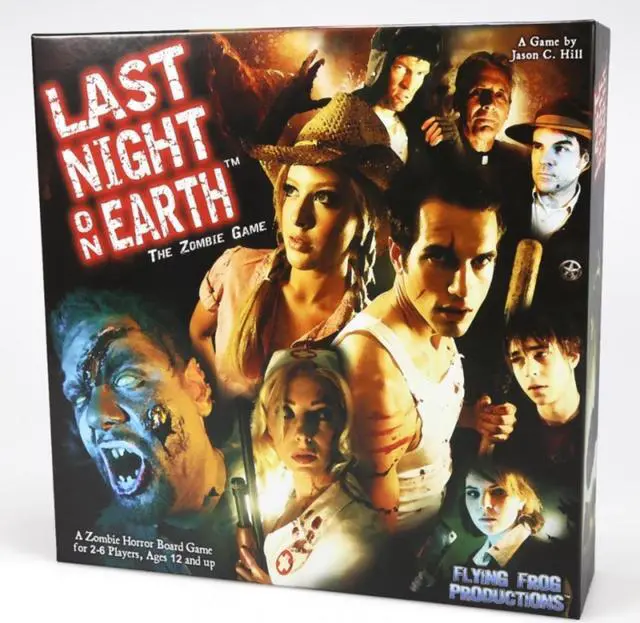 Last Night on Earth The Zombie Game is a fast-paced game of brain-eating zombies, small town heroes and horror movie action. Players take on the role of either the heroes, working together to make it through the night or the zombies, unending waves of undead spreading over the town like a plague. Featuring a modular board, eight heroes to choose from and several different scenarios to play that drastically change the game. Last Night on Earth is designed to create a cinematic feel as the story and game unfolds. For 2-6 players. Takes 60-90 minutes. Modular game boards. Heroes versus Zombies.