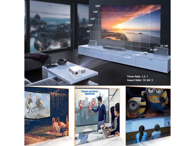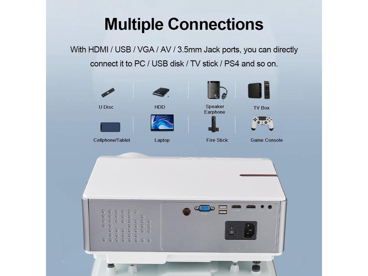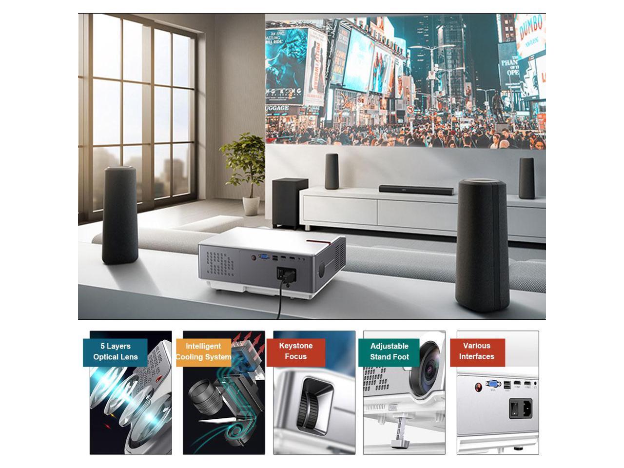 FLZEN 6000 Lumens 1080 Native Projector, 1920x 1080 Native Resolution 4K Supported, 300” Max Image Size, with HDMI USB VGA AV Inputs, Compatible with TV Sticks PC Xbox Playstation USB Drive