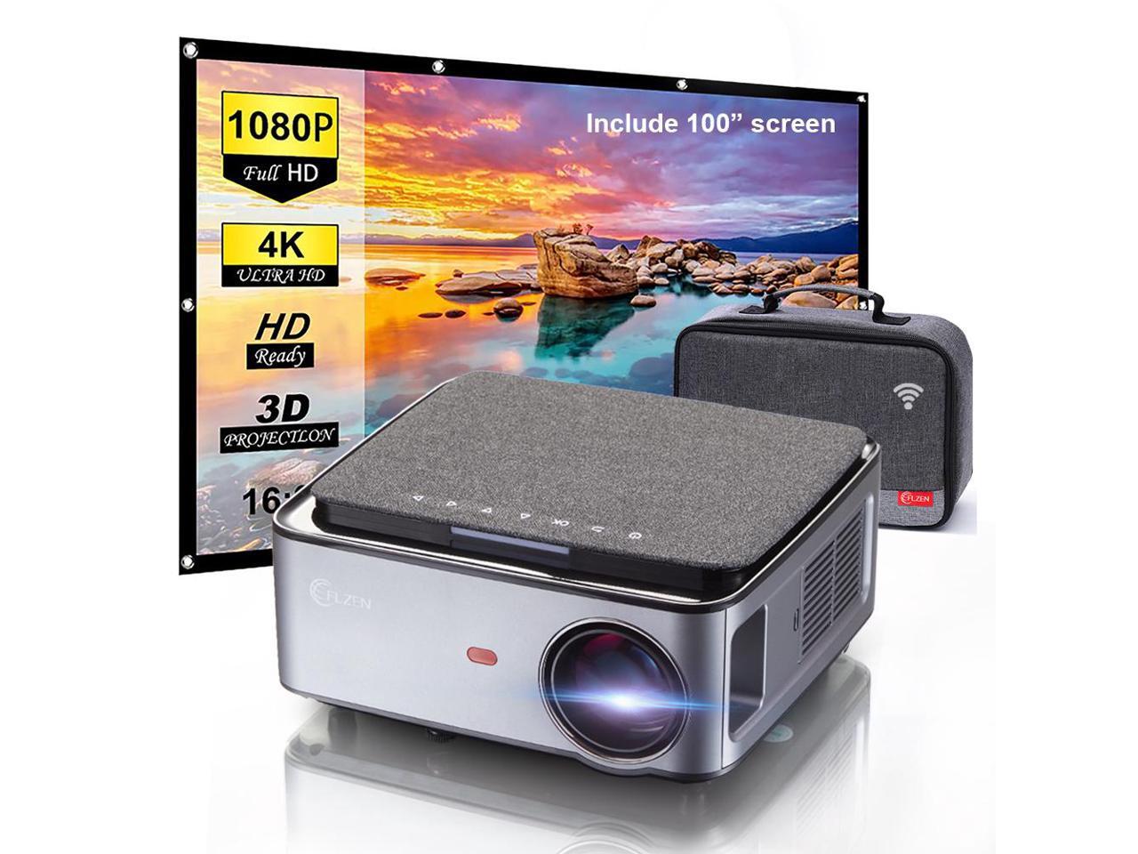 1080P FULL HD Video Projector with Carry Bag and 100" Screen, 7500 Lumen WIFI Projector for iPhone Android iOS Smartphone, Wireless Projector 20000:1 Contrast, Support Miracast Airplay Side Projection