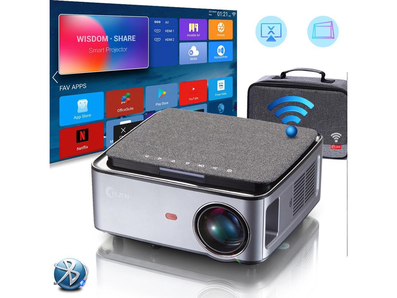 1080P Native WIFI Projector Android 9, Full HD 7500 Lumen 20000:1 Bluetooth Projector for Home & Office, 4K Side Projection 4D Keystone Screen Mirroring & Screen App Control, 100 Screen & Carry Bag