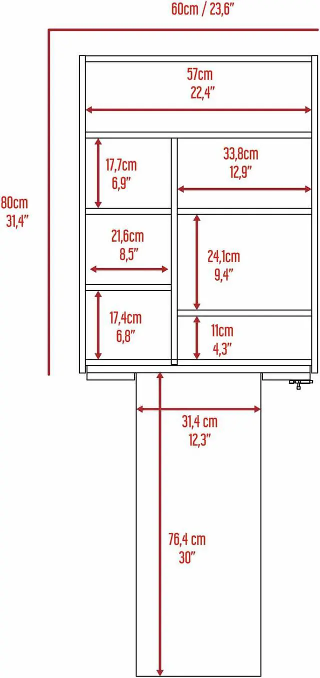 Its seven different shelves on the wall-mounted hutch complement the functionality of this product. A locking mechanism is also featured to use the product without the risk of any accidents. This product comes with all-metal hardware and wall anchors to install this product to the wall safely. It is made of engineered wood in a white finish.