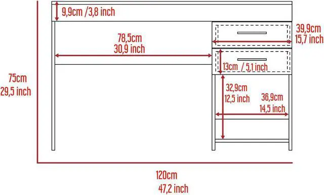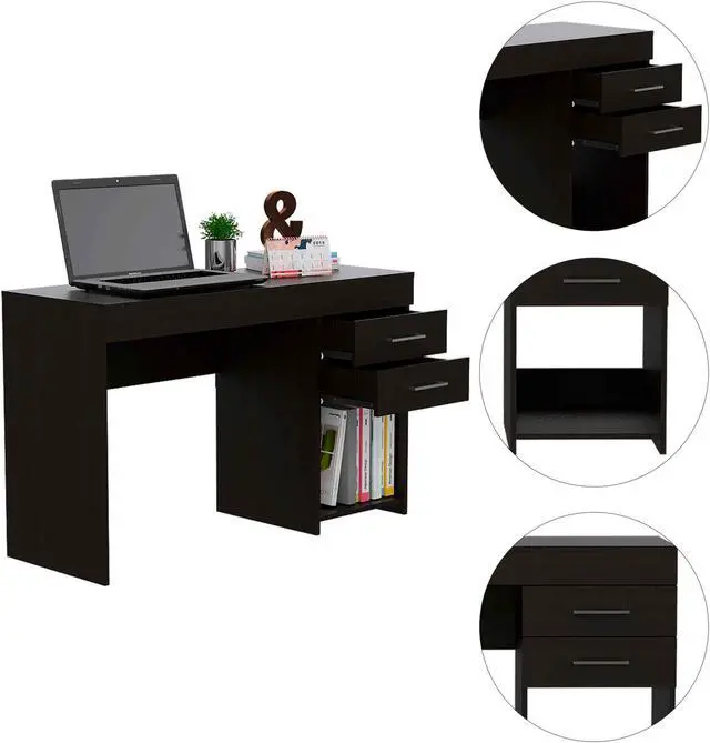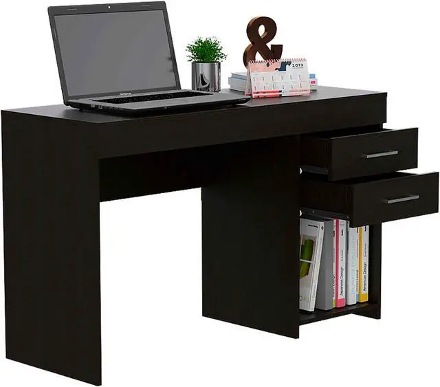 Come in and get it now. The Austin 2 computer desk is a classic piece that will cover your back when it comes to today's needs of remote learning or working from home. Standing at 28.7" inches high and 47.5" wide, this desk is perfect and has a straightforward design for spaces with limited space available. Featuring two spacious top drawers and one open bottom shelf is ideal for keeping things neat and organized while you work or study. Made of engineered wood in black wenge finish.