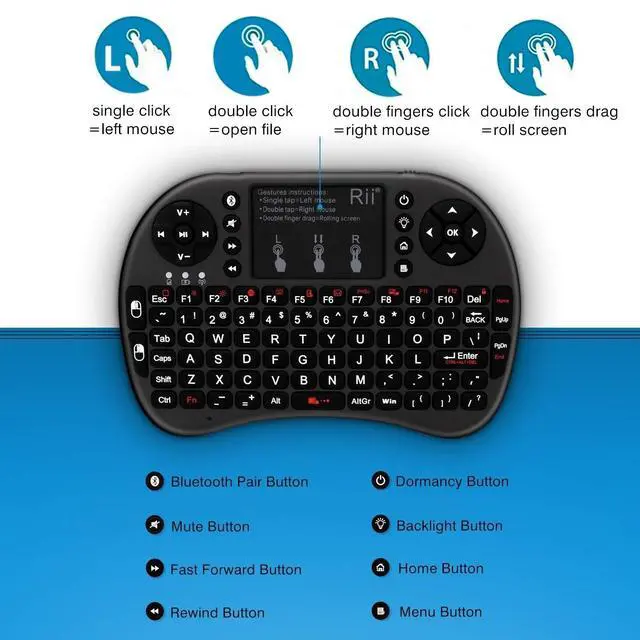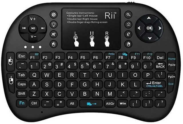 Rii's i8+ is the premier mini keyboard on the market. The keyboard includes a touchpad DPI adjustable functions and built-in high sensitive smart touchpad with 360-degree flip design. With a new classic look, the Rii Mini i8+ new increased LED backlit function can be used with LED lighting Qwerty keyboard with multimedia control keys and PC gaming control keys.