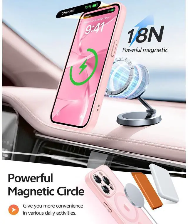 Strong Magnetic Charging: Fit for Magnetic chargers and other Wireless chargers. This iPhone 15 Pro Max Case has built-in 38 super N52 magnets. Its magnetic attraction reaches 2400 gf, which is almost 7X stronger than ordinary, therefore it won't fall off no matter how it shakes when you are charging. Aligns perfectly with wireless power bank, wallets, car mounts and wireless charging stand