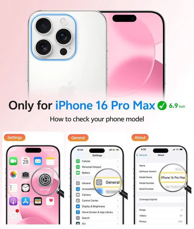 14FT Military Grade Drop Protection: Our Phone Case iPhone 16 Pro Max backplane is made with rigid polycarbonate and flexible shockproof TPU bumpers around the edge and features 4 built-in corner Airbags to absorb impact, which can prevent your Phone from accidental drops, bumps, and scratches