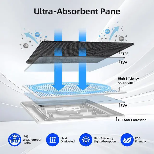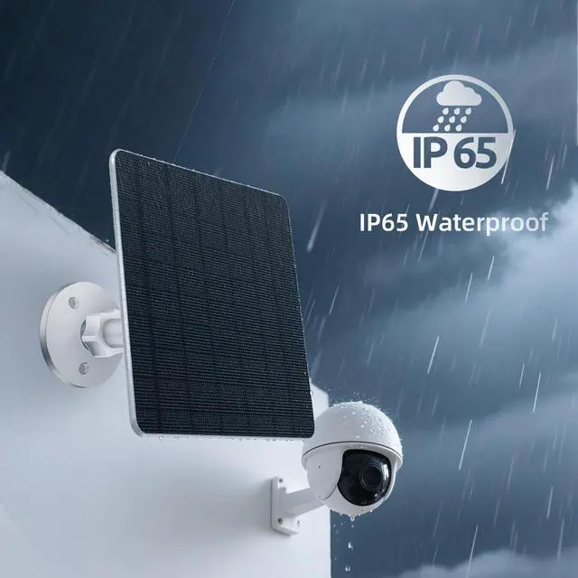 Outdoor IP65 WaterProofThe solar panel for security camera with IP65 waterproof, durable and long-lasting. Weatherproof design can withstand severe weather conditions such as heavy rain, snow, which makes it for outdoor use.