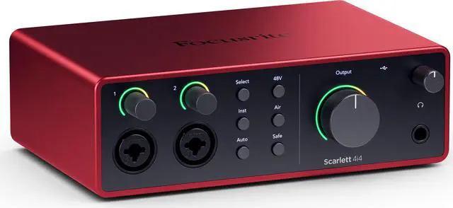 A custom-designed headphone amp and huge dynamic range set the stage for the best playback you've ever heard from Scarlett. Scarlett drives high impedance headphones louder and clearer than ever before. With 4 line outputs, you can easily connect different monitor setups. 4i4 also has independent controls for your headphones and monitors so you can record, mix and play back audio however you want.