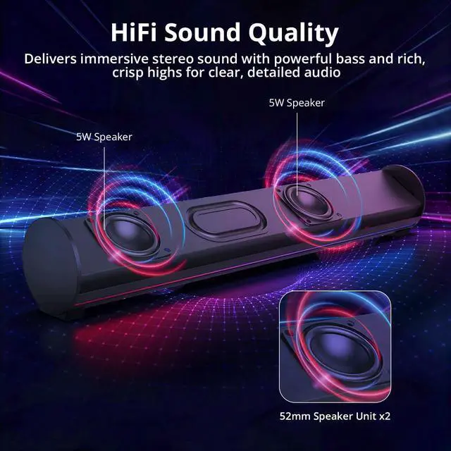 Computer Speaker has 3 EQ presets switch easily between music, movies, and gaming for comfortable listening.