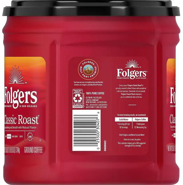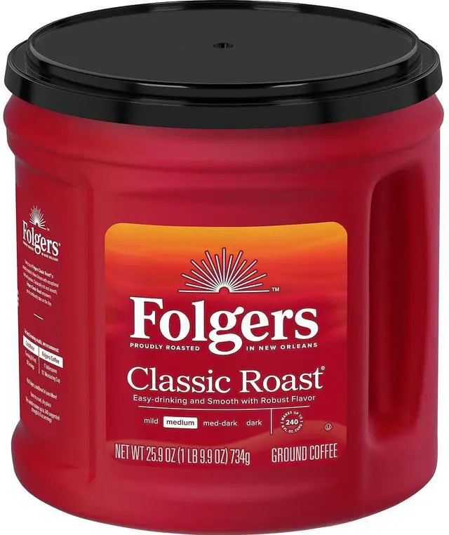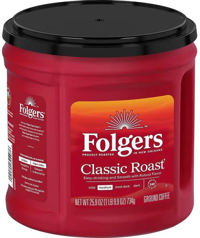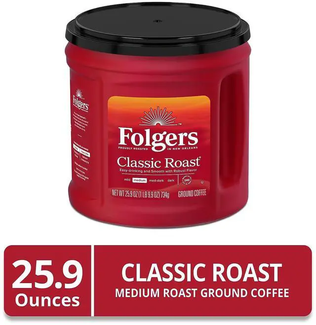 Folgers Classic Roast ground coffee packs irresistible taste in every cup.
