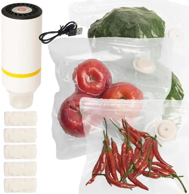 Handheld Vacuum Sealer Kit with 30 Reusable Bags, Upgraded 3D Valve & Moisture Removal Cup, USB Rechargeable, for Sous Vide, Freezer Storage & Food Freshness