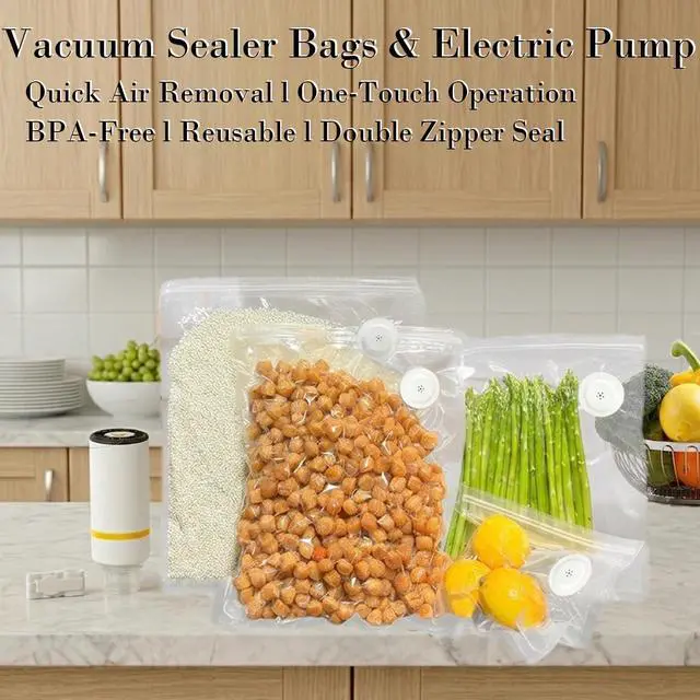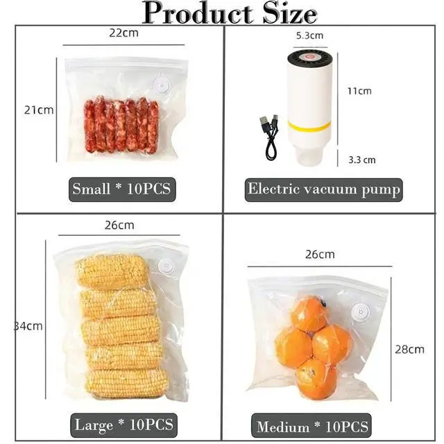4. Everything you need comes in the box: 1 electric pump (with moisture-extraction cup), 30 reusable bags with 3D valves (Large/Medium/Small), and 5 sealing clips. This all-in-one system provides a complete vacuum-sealing solution that effectively locks out air and moisture to significantly extend food freshness. It's the ideal choice for both preparing ingredients for Sous Vide cooking and everyday food storage and organization.