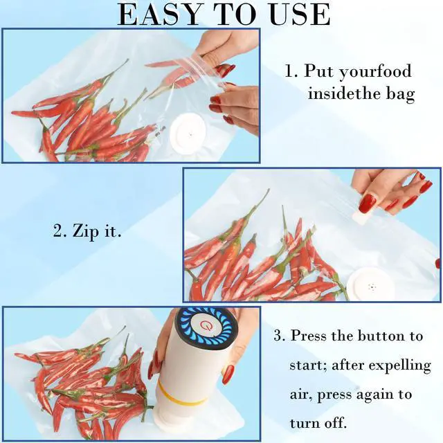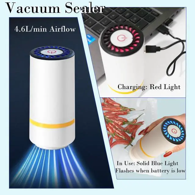 3.The included cordless electric pump delivers powerful suction, rapidly removing air and sealing bags in seconds. It is equipped with a dedicated moisture-extraction cup to easily handle liquids from wet foods (like fruits or marinated meats). Its USB-rechargeable and cordless design offers ultimate convenience for both home kitchen use and travel.