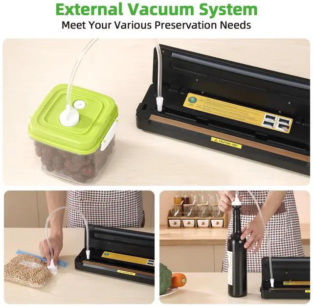 Introducing the Vacuum Sealer Machine from Globefish Technology, designed for high-speed continuous working and efficient food preservation. This compact and fast sealer is a multi-functional powerhouse, allowing you to vacuum seal a variety of food items with ease. Say goodbye to freezer burn and extend the shelf life of your favorite foods. The vacuum bags provided ensure an airtight seal, locking in freshness and flavor. With its user-friendly design and efficient operation, this sealer is a must-have for any modern kitchen. Streamline your meal prep, reduce food waste, and enjoy fresher meals for longer periods. Experience the convenience of vacuum sealing with this top-quality machine.